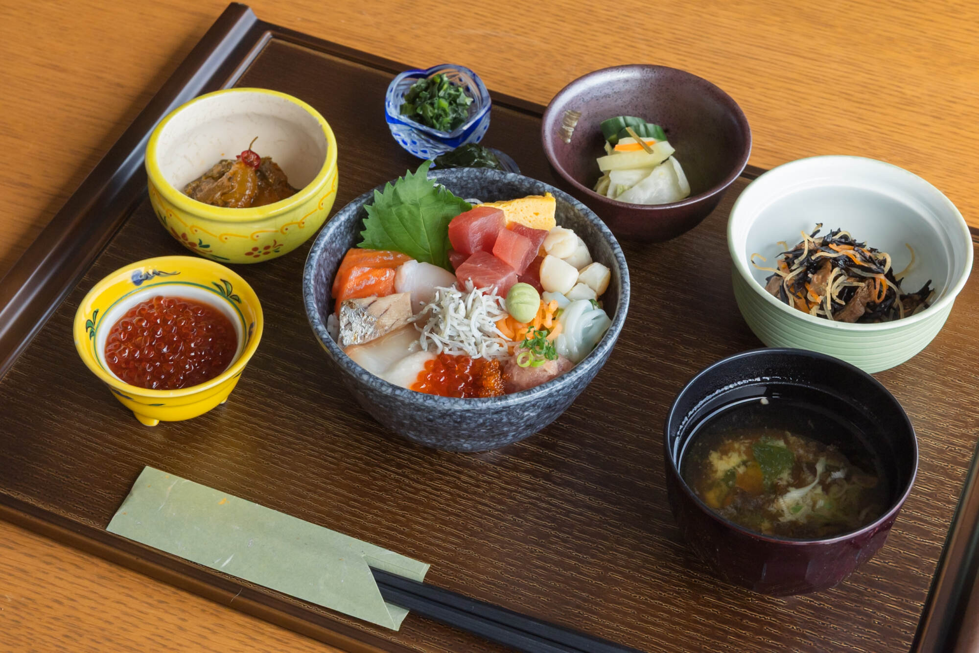 新鮮な海の幸を数種類ご用意し、お好みで楽しめるオリジナル海鮮丼をお召し上がりいただけます。