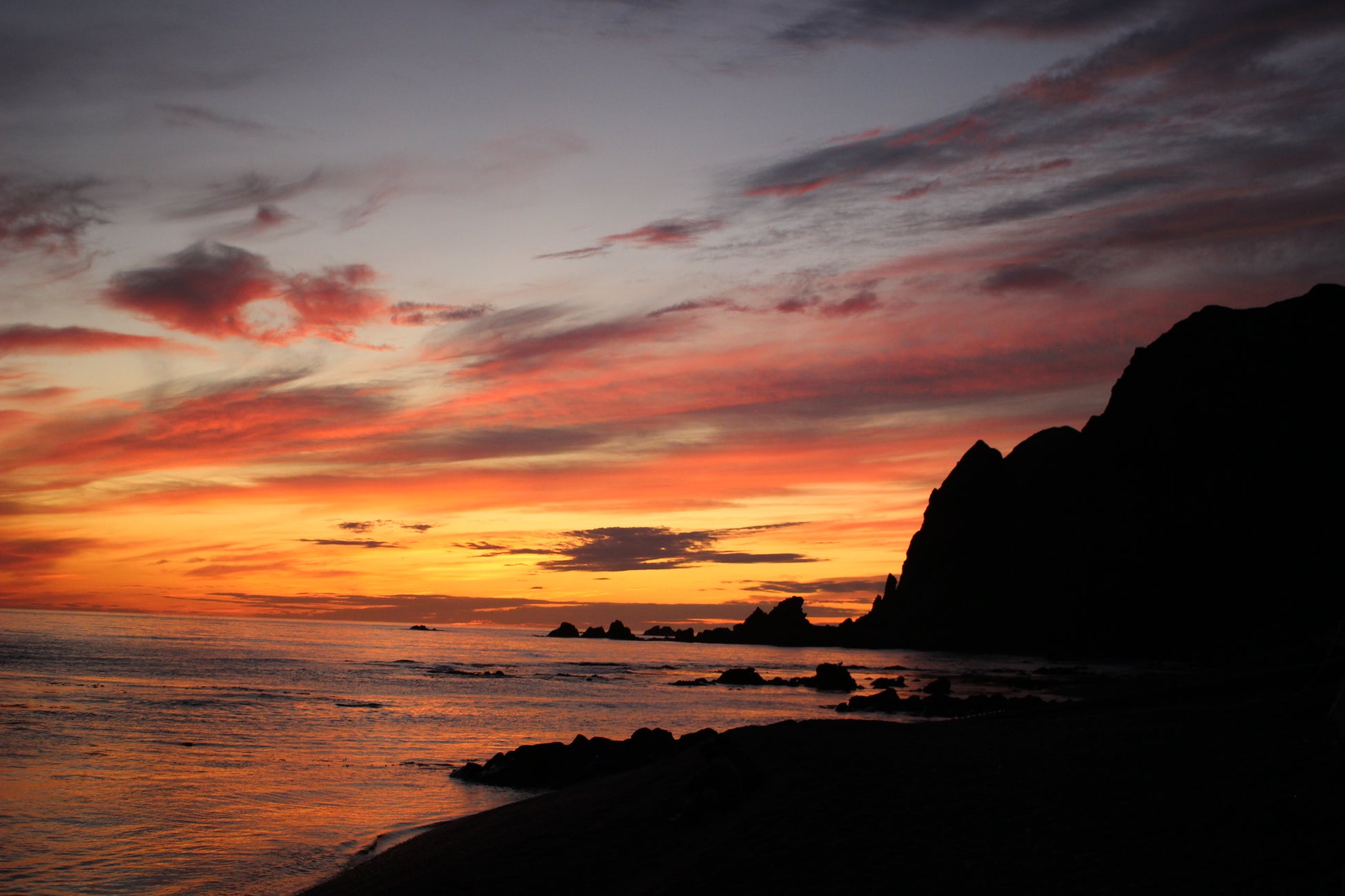 咲涼前の海越しにそびえる利尻山は、日没前のマジックアワーに神秘的な景色を描き出します。さらに、夕日の名所として知られる礼文島 元地海岸のメノウ浜では、日本海に沈む夕日が空と海を黄金色に染め上げる、圧巻のサンセットをご覧いただけます。
